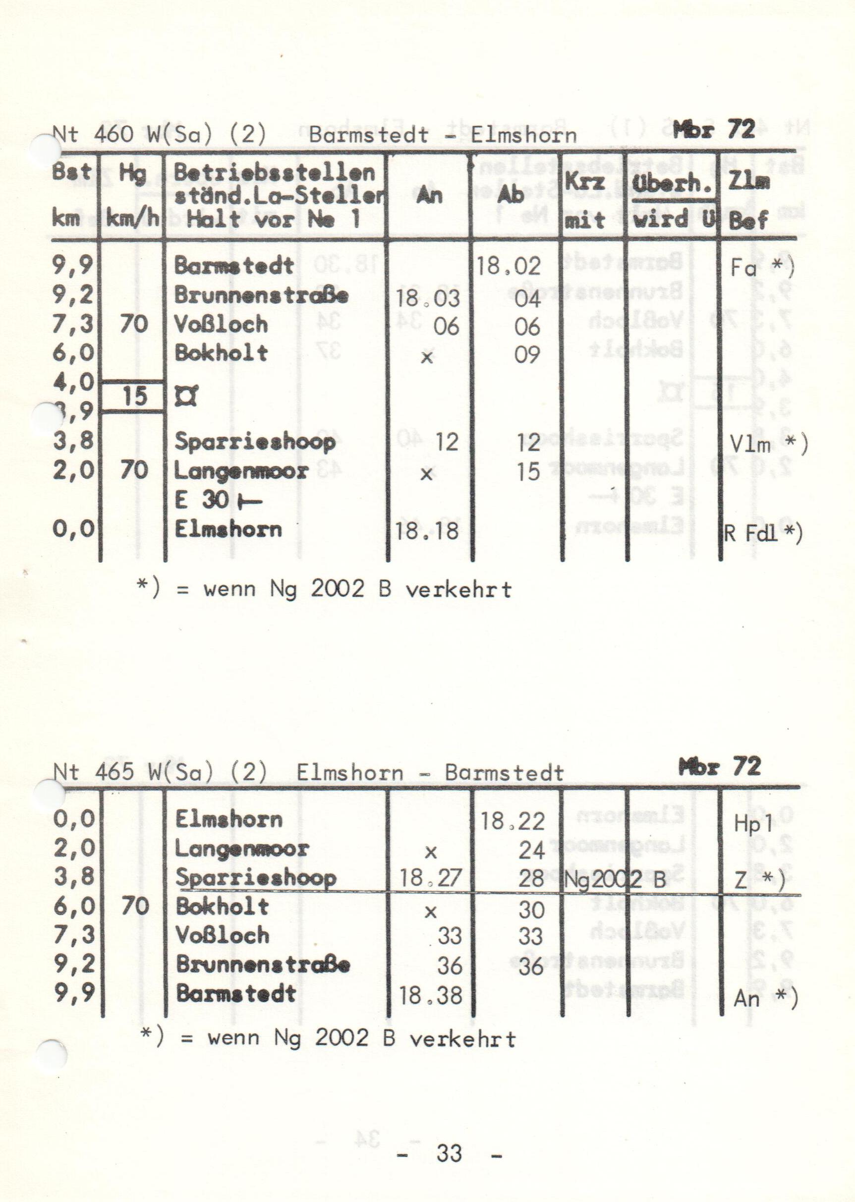 Eine Seite des Buchfahrplans der EBO gültig vom 22. Mai 1977. Der Buchfahrplan im DIN A5 Format enthält die Abfahrtszeiten aller Personenzüge sowie der regelmäßigen Güterzüge an Samstagen.