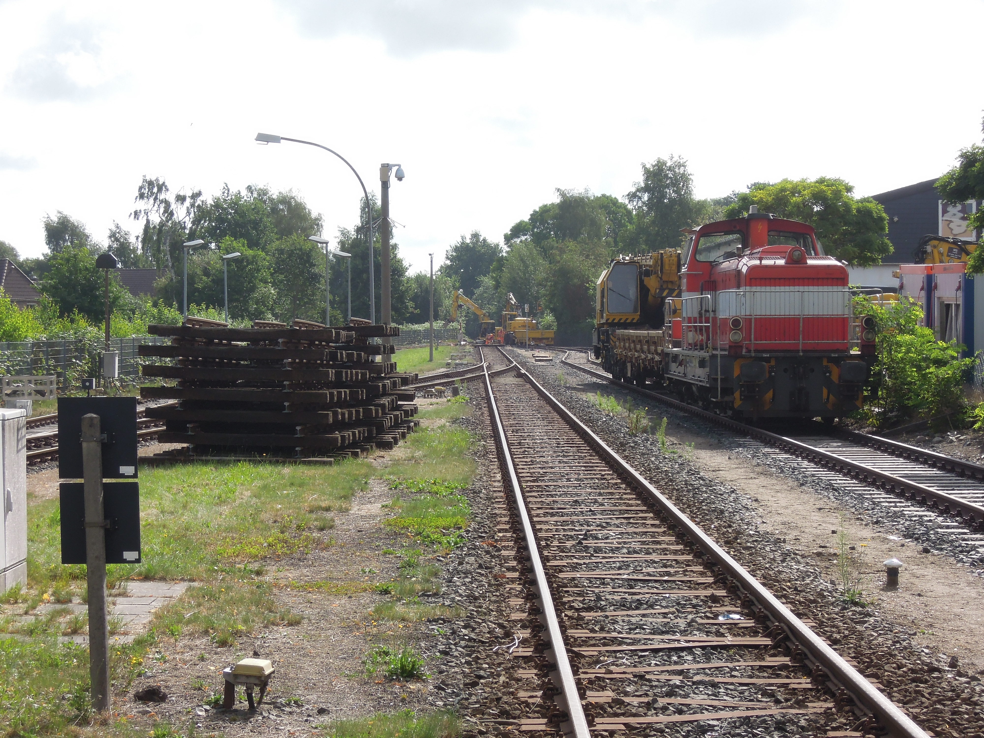 Für die Bauarbeiten zog die Lok V2.017 unter anderem einen Baukran nach Barmstedt.