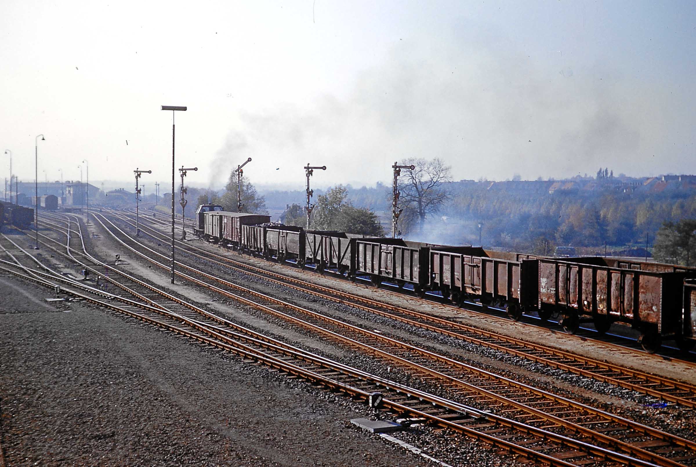 Bf Oldesloe Ausfahrt V3.022 mit Güterzug 1966