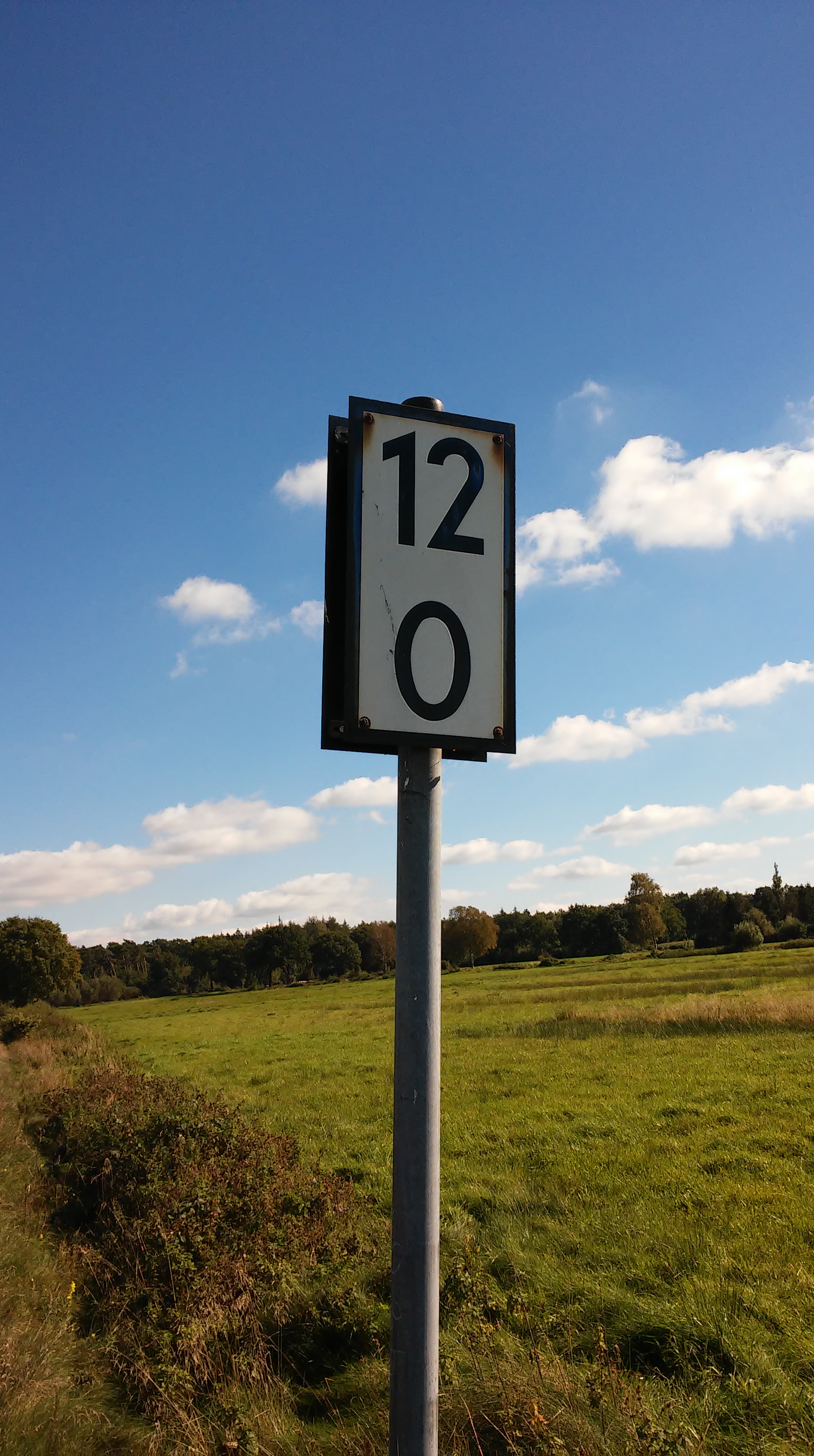 Diese Aufnahme zeigt die Kilometertafel 12km zwischen Barmstedt und den Grelckschen Tannen. Datum der Aufnahme ist der 30. September 2015.