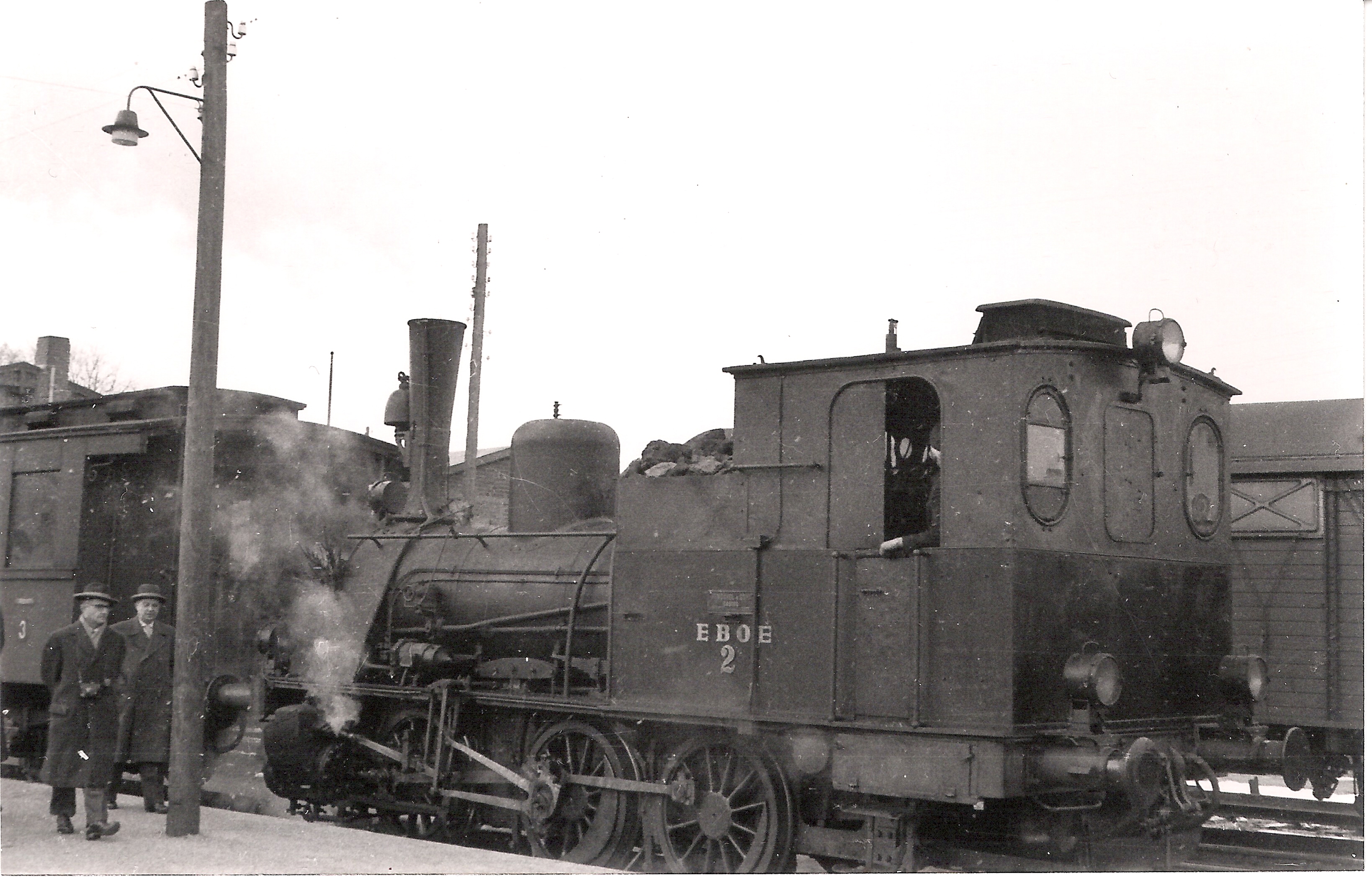 Die Lok 2 ist umgelaufen und jetzt an der Spitze des Zuges in Richtung Kaltenkirchen. Der Sonderzug der Freunde der Eisenbahn (FdE) wird dort das neue Betriebswerk besichtigen. Die Aufnahme entstand am 9. März 1958 durch Manfred Hohmann.