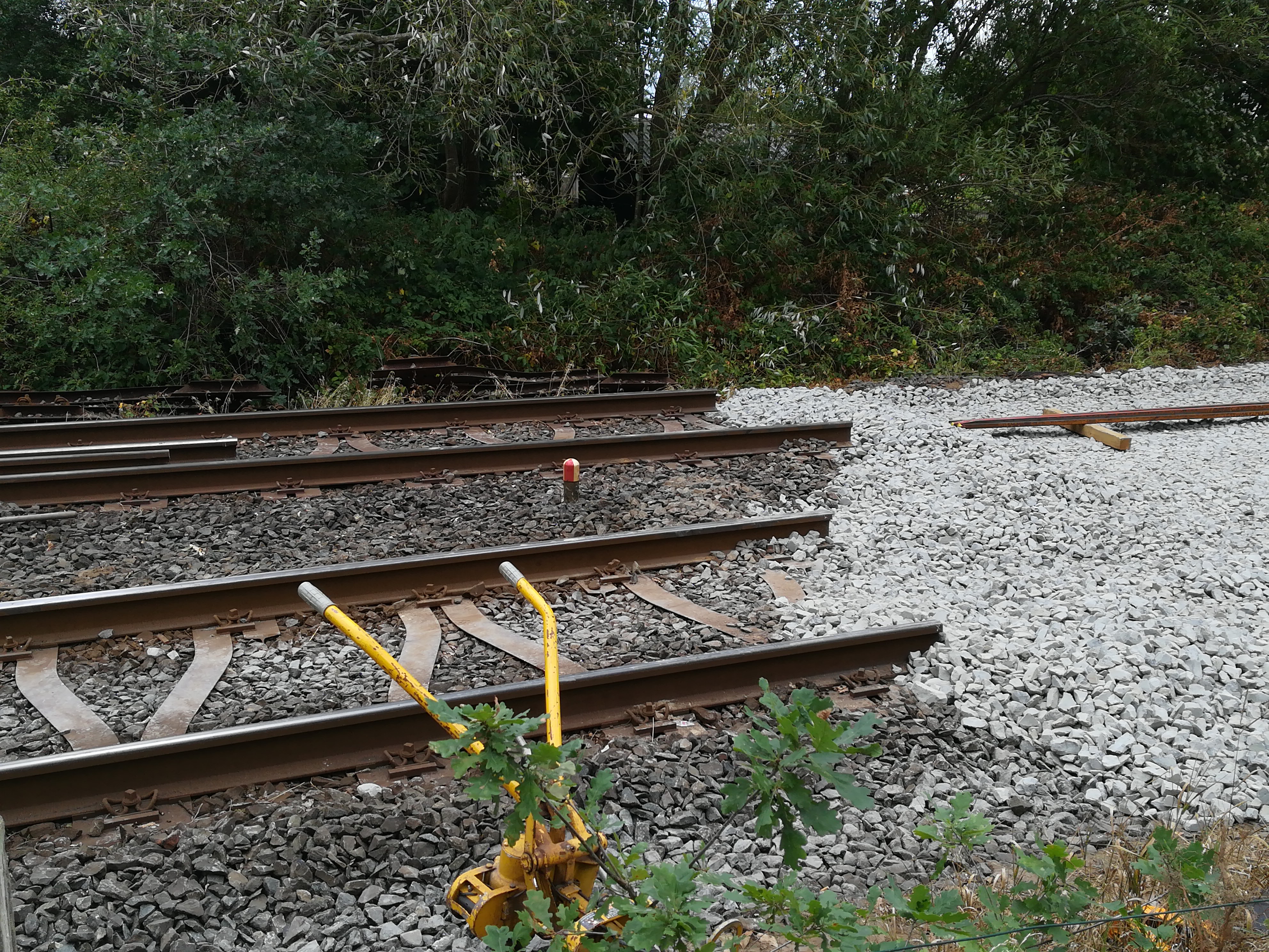 Diese Aufnahme zeigt das östliche Ende des Bf Sparrieshoop. Die Weiche in Richtung Barmstedt wurde bereits ausgebaut. An dieser Stelle wurde schon neuer Schotter eingebracht, um den Untergrund für die neue Weiche vorzubereiten. 17. August 2018.