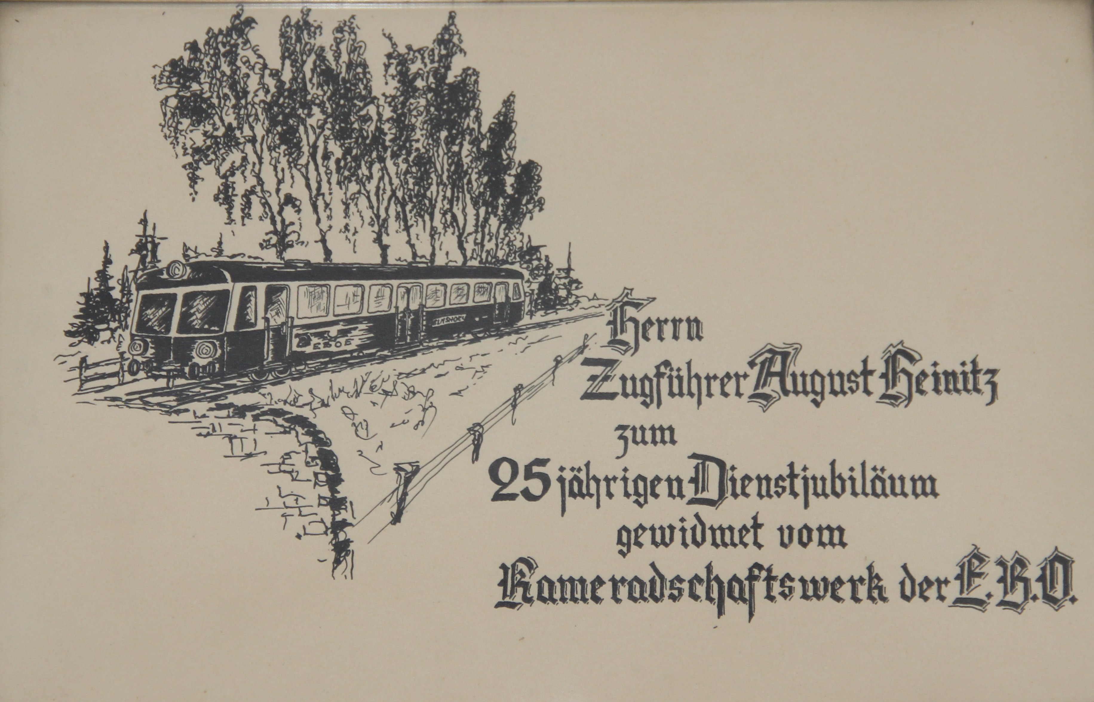 Mein Großvater August Heinitz hat dieses Bild zu seinem 25-jährigem Jubiläum vom Kameradschaftswerk der EBOE erhalten.