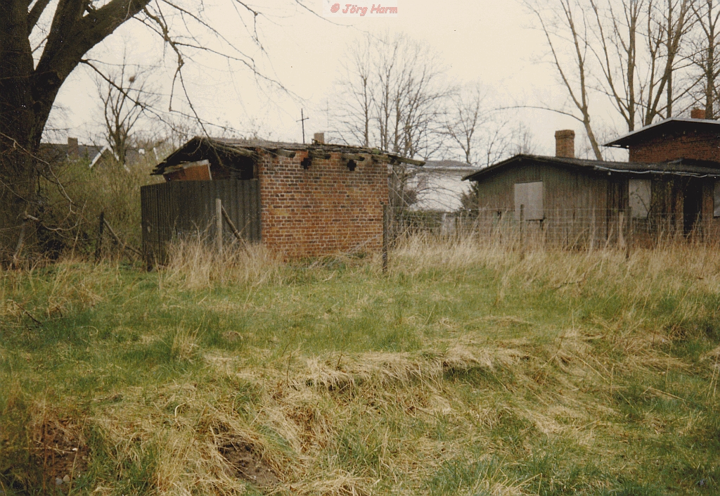 Diese Aufnahme zeigt den Bf Sülfeld in den 1990er Jahren. Das Dach des kleinen Gebäudes fehlt bereits teilweise. Die Gleise wurden bereits vollständig entfernt. Bäume und Sträucher sind bereits hoch gewachsen. Aufnahme von Tanja Harm.