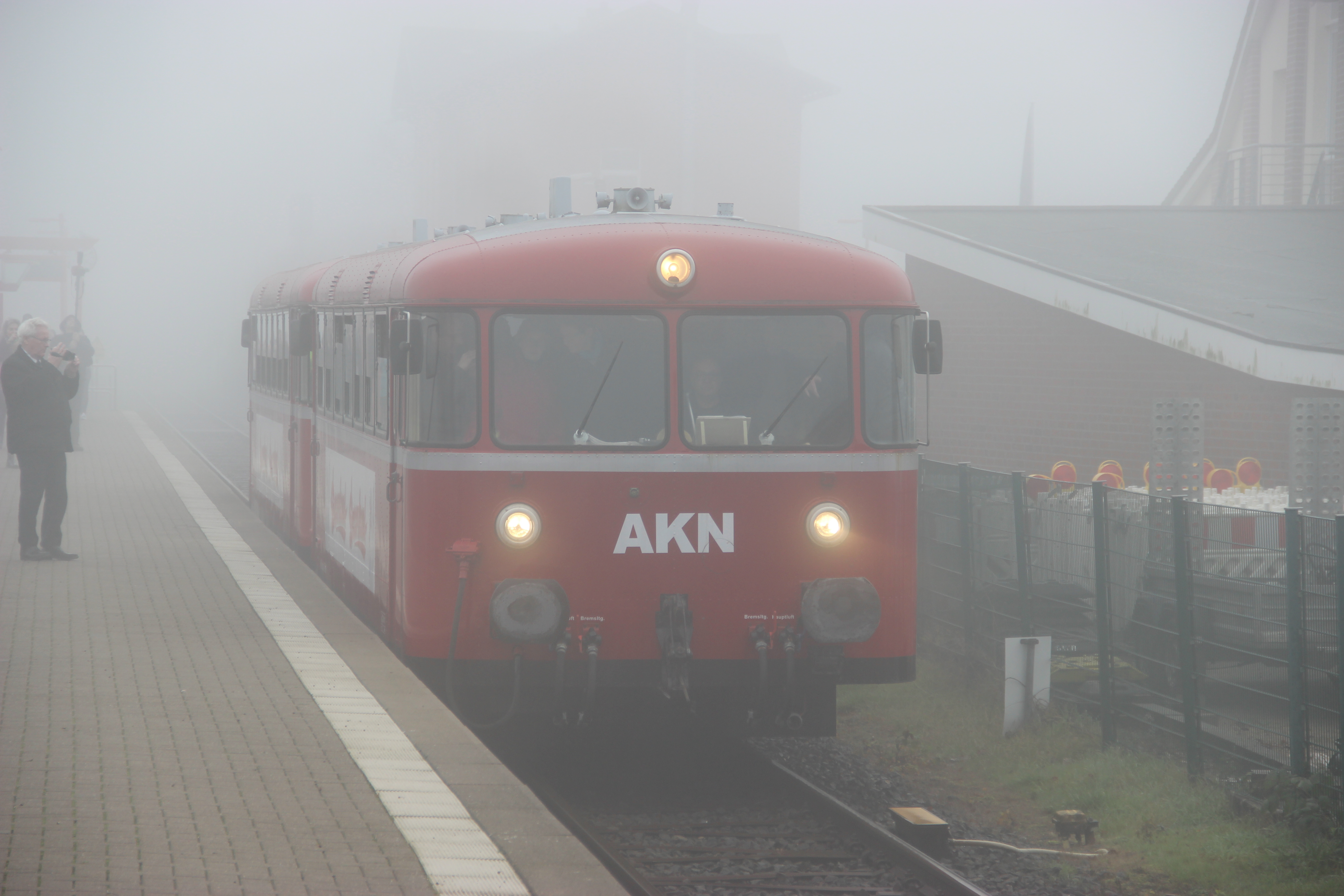 Am 1. Dezember 2019 führte die AKN Abschiedfahrten zwischen Elmshorn und Ulzburg mit den ehemaligen Uerdinger Schienenbusen der EBOE VT 3.08 und VT 3.09 durch. Die hier gezeigten Bilder zeigen die beiden Triebwagen im dichten Nebel im Bf Barmstedt.