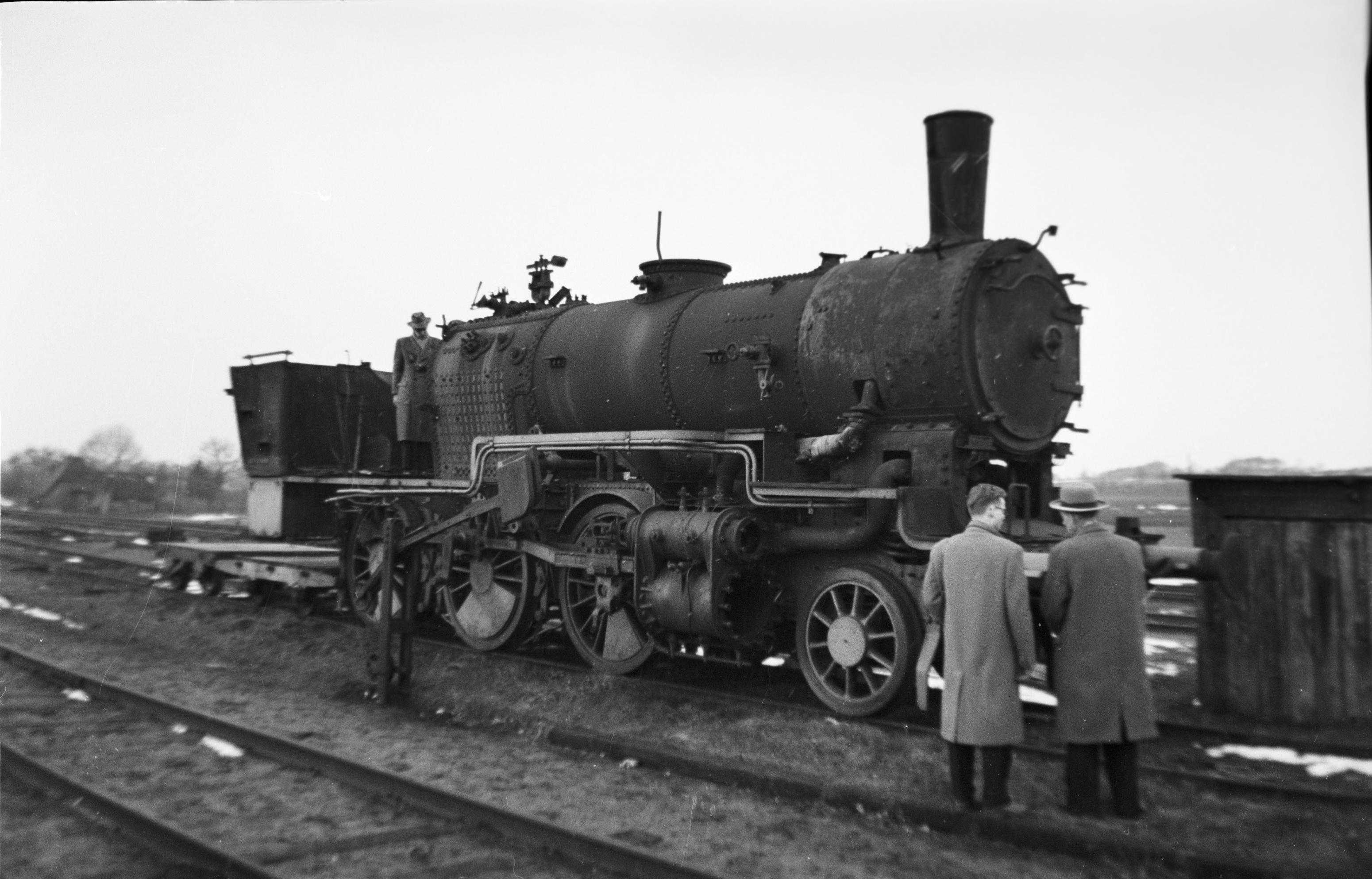Während der Fahrt mit einem Sonderzug der Freunde der Eisenbahn (FdE) am 9. März 1958 hatten die Fahrgäste während eines Aufenthaltes in Wakendorf-Götzberg das Bw zu besichtigen. Dabei wurde auch die teilzerlegte Dampflok Lok 5 bestiegen und besichtigt. Aufnahme von Manfred Hohmann.