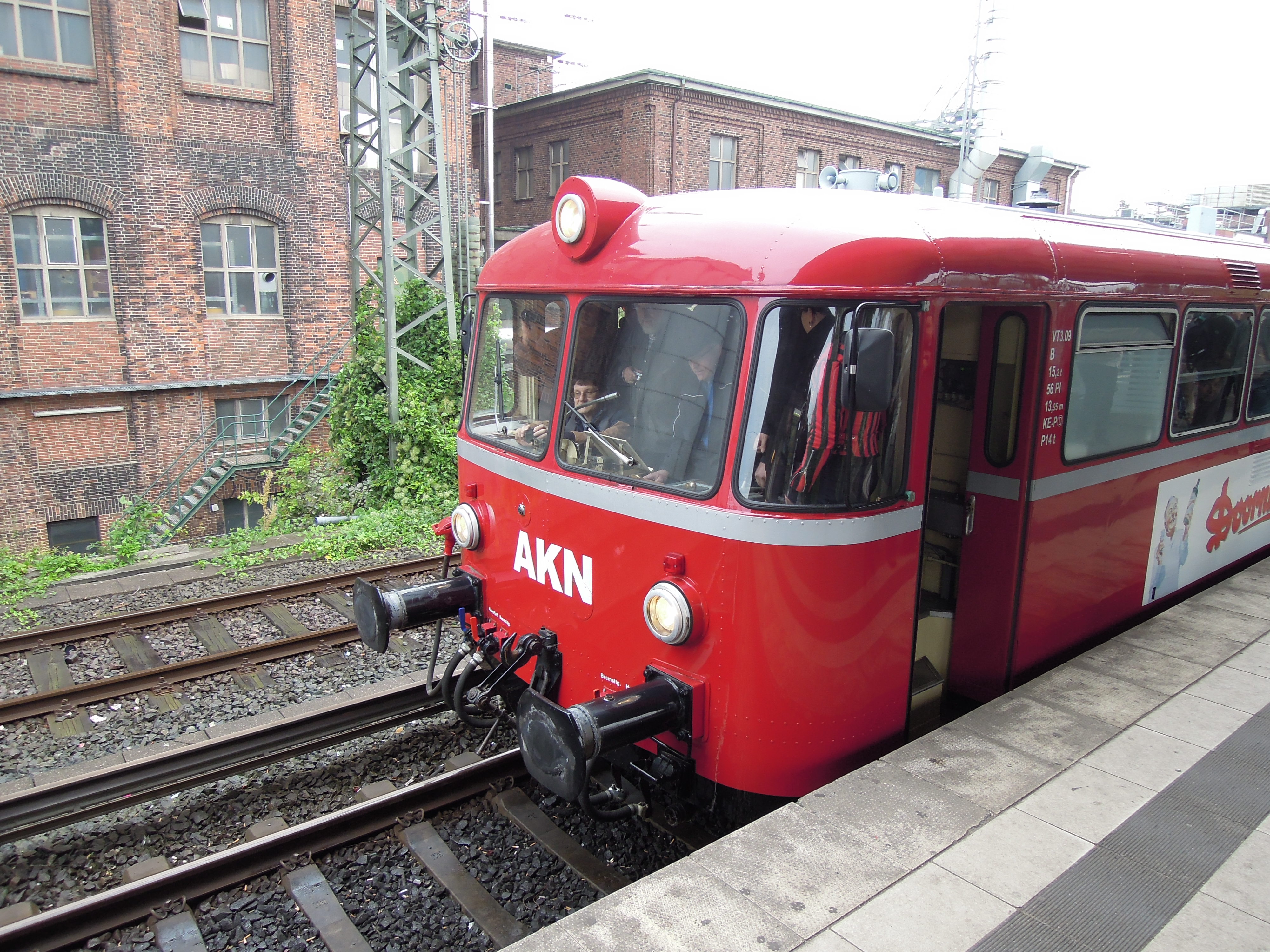 Beim verkehrshistorischen Tag in Hamburg war auch die AKN vertreten. Hier steht VT 3.09 im Bf Eidelstedt und wartet auf die nächste Fahrt nach Quickborn. VT 3.08 konnte an diesem Tag nicht an den Pendelfahrten teilnehmen, da dieser nicht betriebsbereit war.