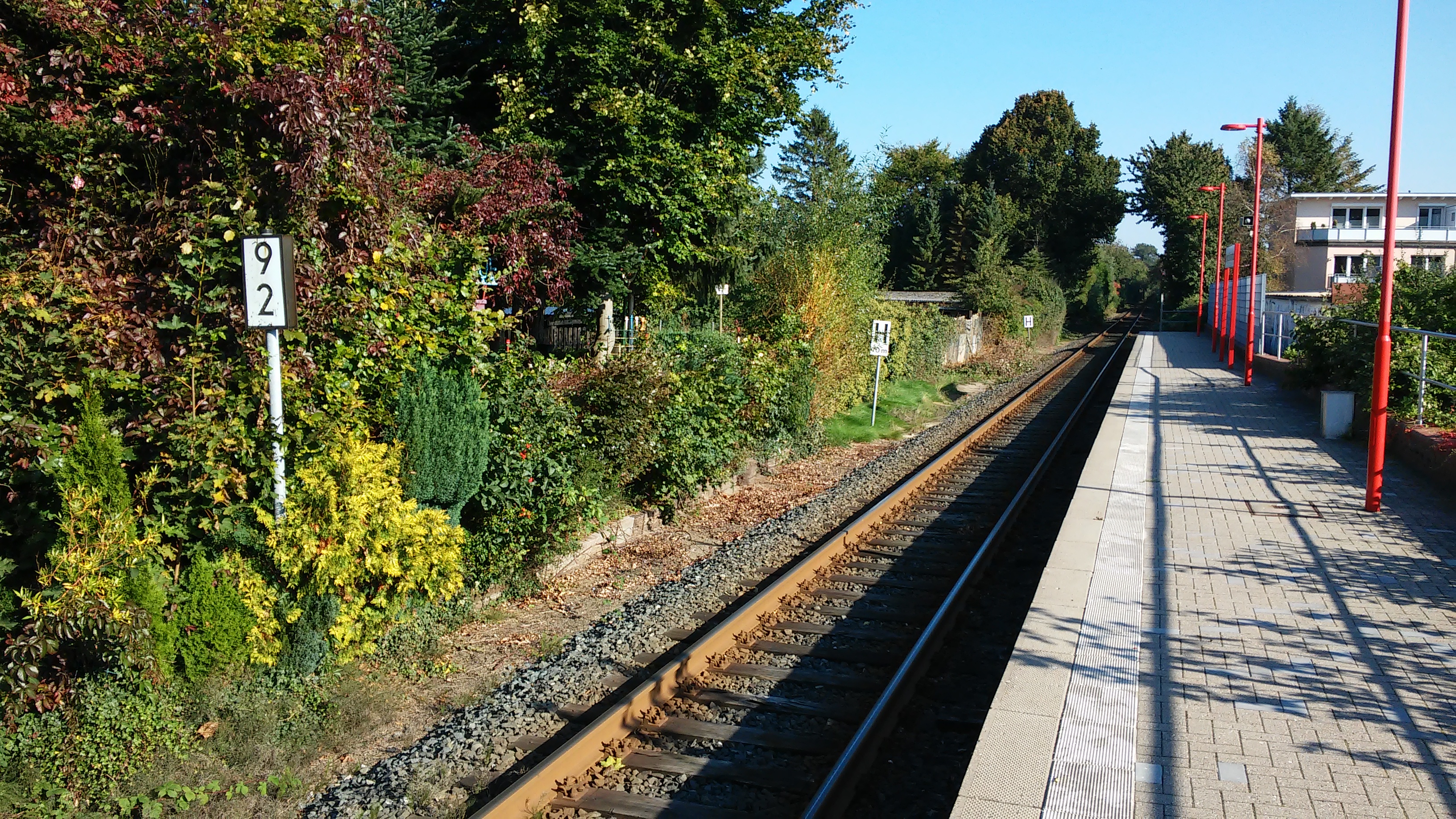 Blick vom Hp Brunnenstraße in Richtung Barmstedt auf Kilometertafel 9.2km am 12. Oktober 2015.