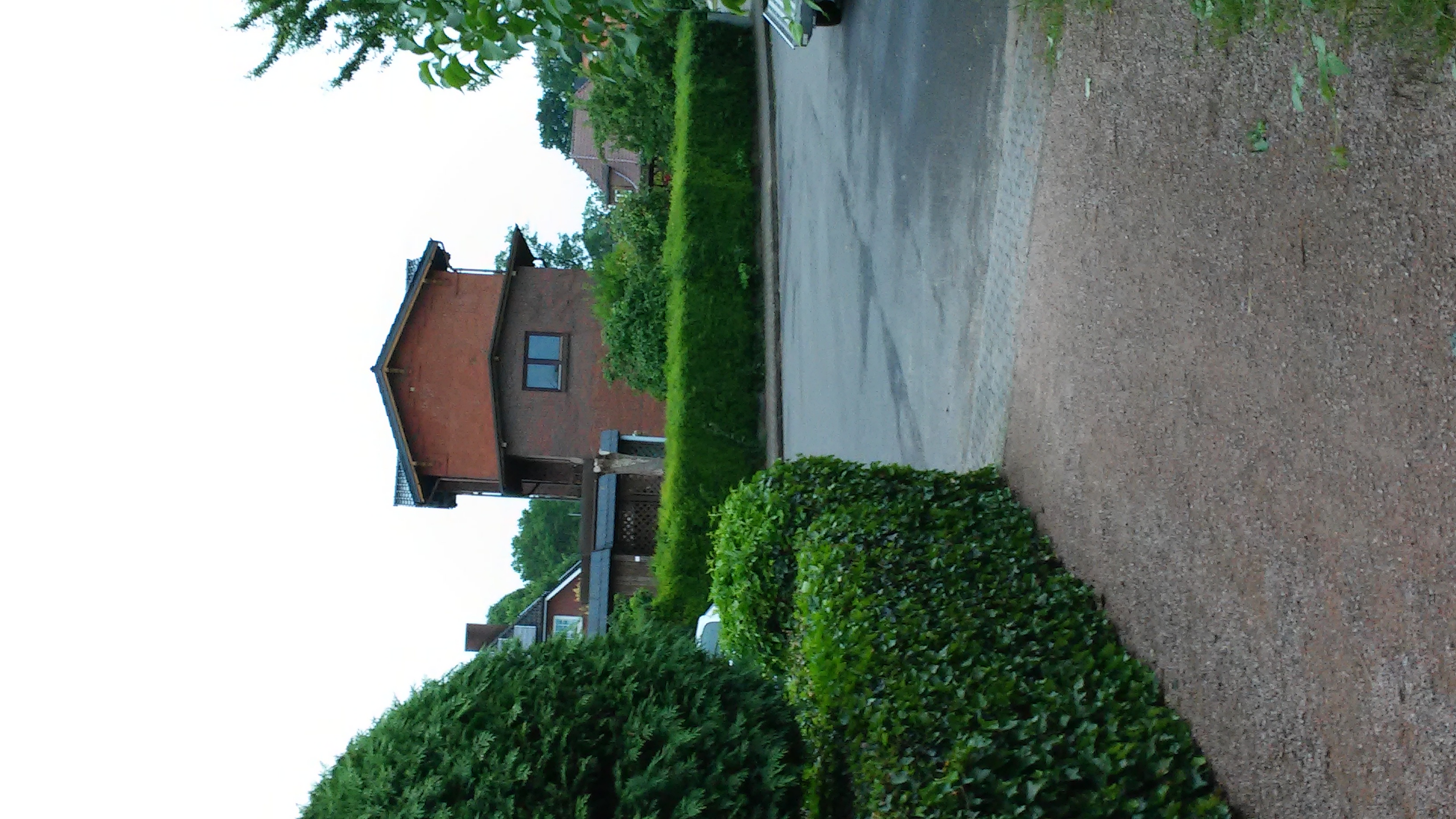 Blick von Westen auf das ehemalige Empfangsgebäude des Bf Wakendorf-Götzberg, das heute als Wohnhaus privat genutzt wird. Das große Gelände des ehemaligen Bw Wakendorf-Götzberg, das eine große Werkstatt hatte, ist weitgehend mit Wohnhäusern überbaut. Das Foto wurde am 12. Juni 2016 aufgenommen.