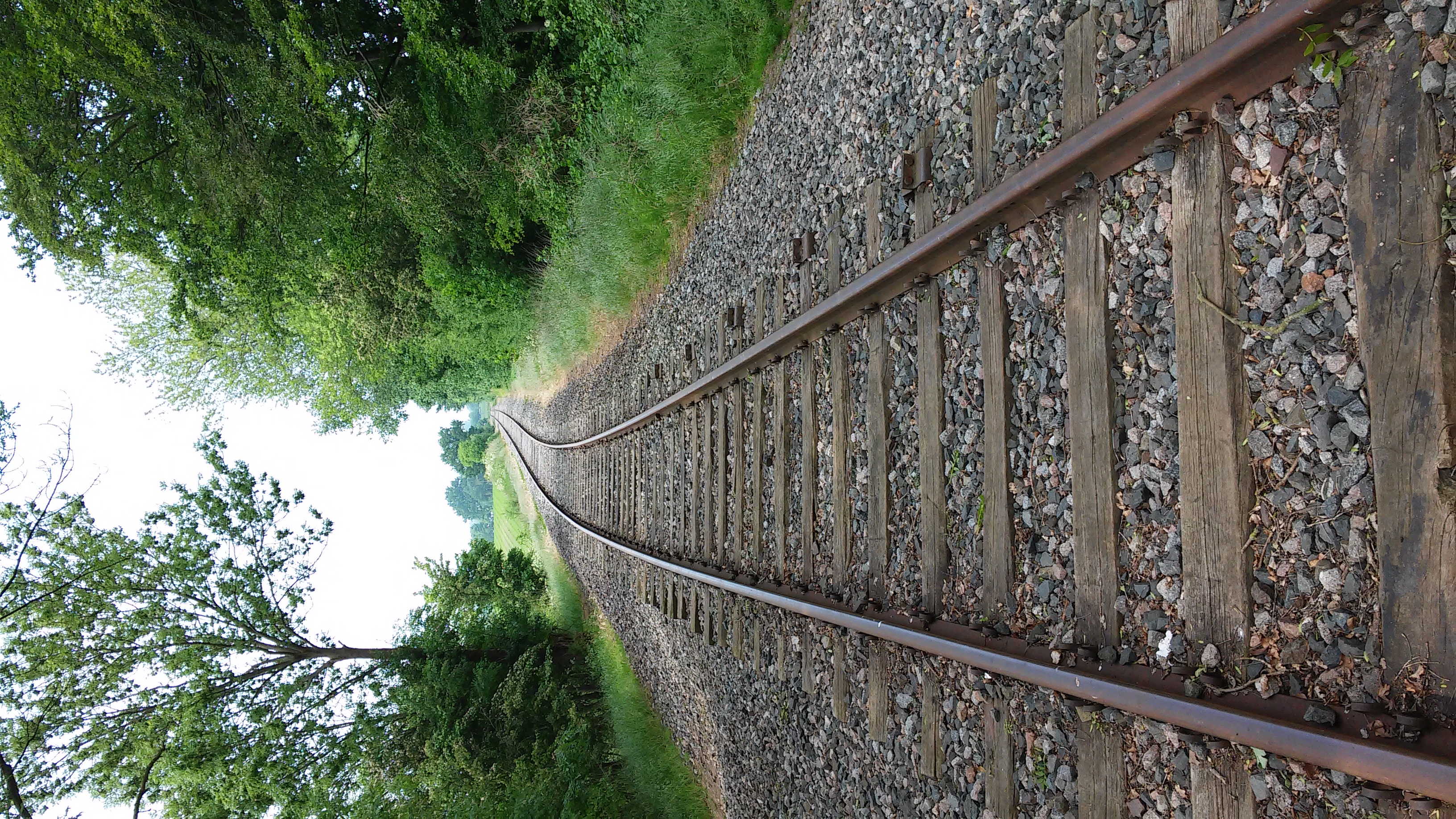 Trasse des Industriestammgleises zwischen Blumendorf und Oldesloe auf Höhe der Bestebrücke am 6. Juni 2015.