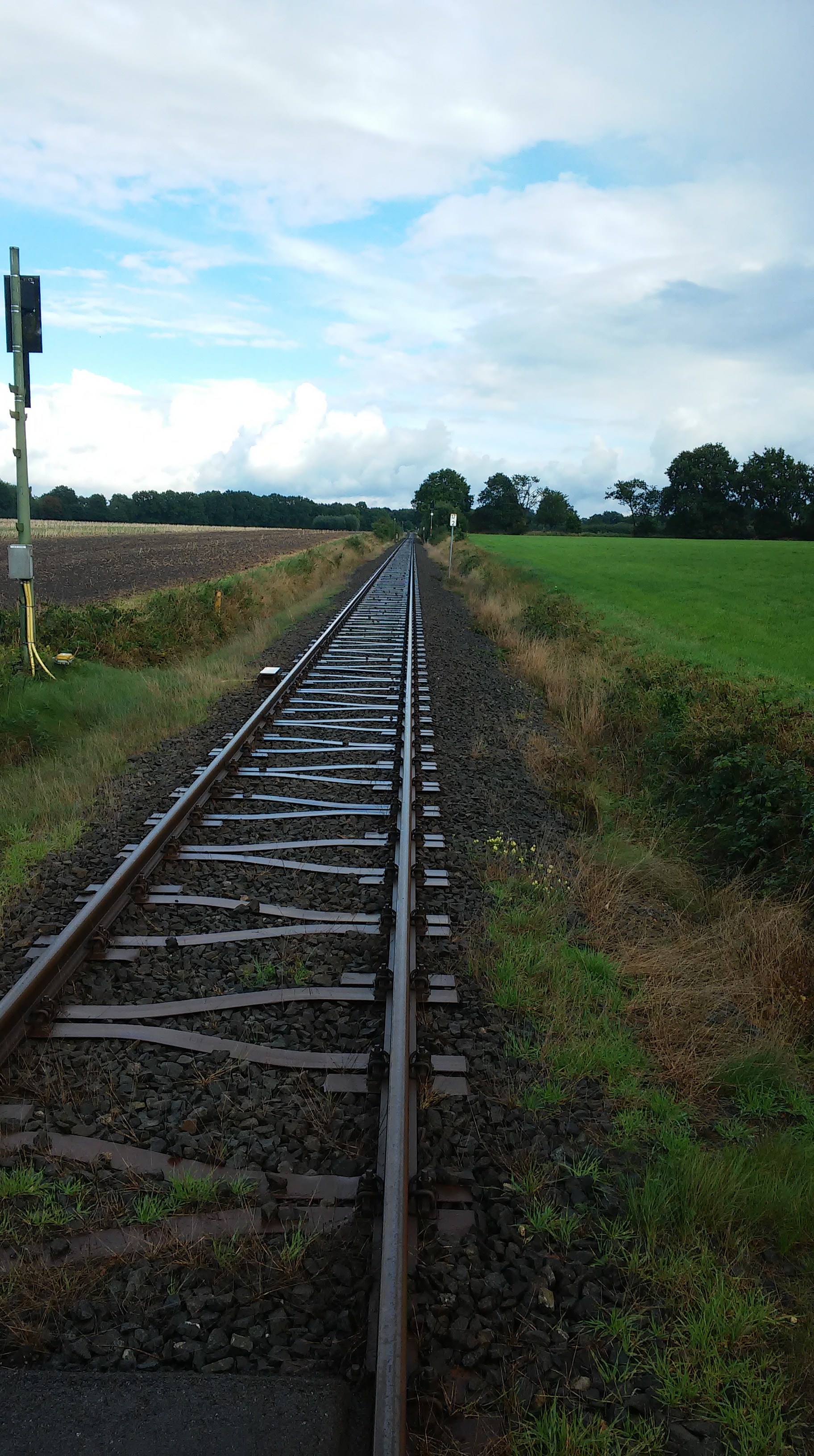 Diese Bilder zeigen die Strecke zwischen Alveslohe und Hoffnung. Zu sehen ist der ehemalige EBOE Kilometerstein bei 17km sowie der Fußgängerübergang "In de Möschen".
