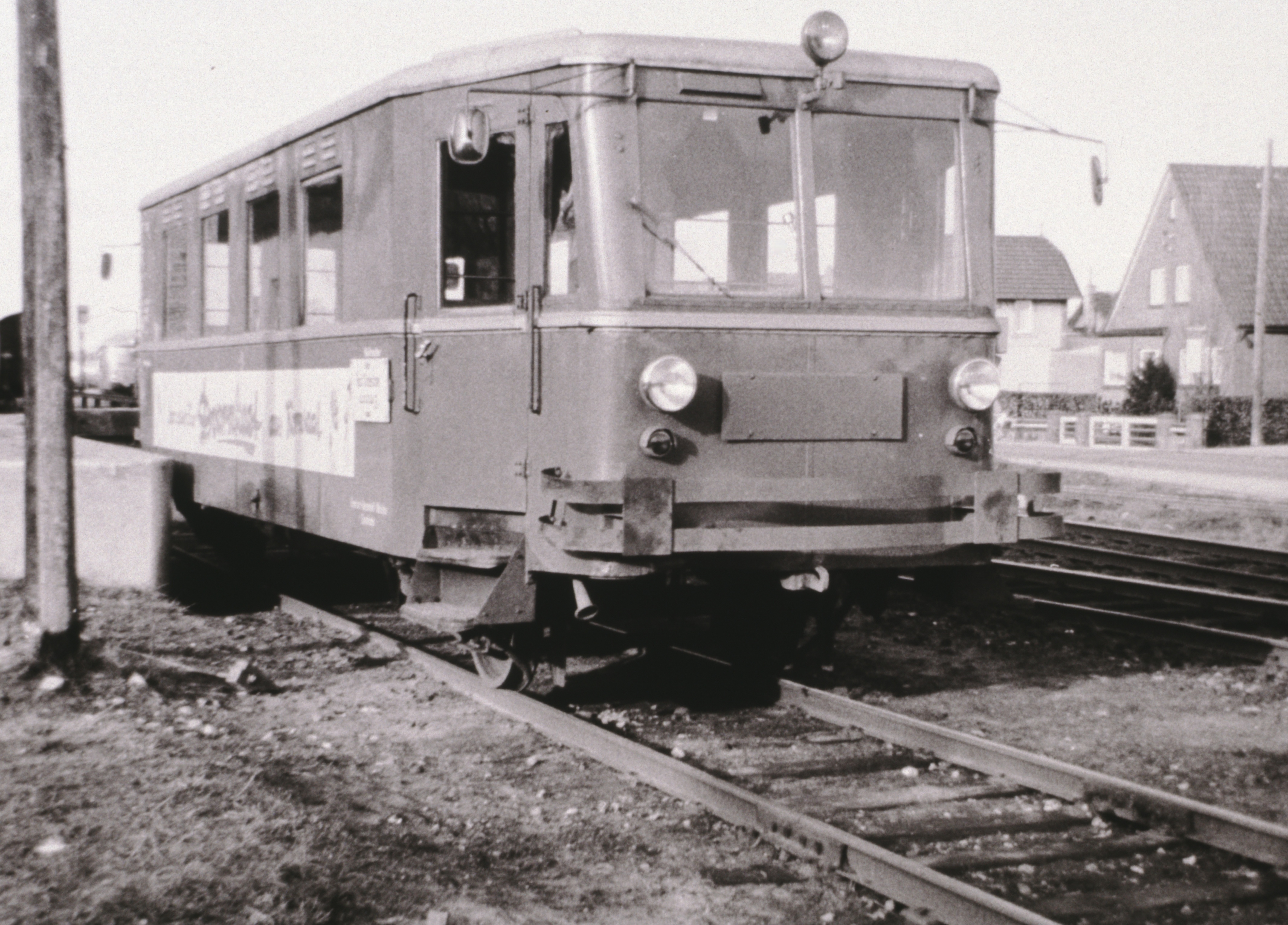 Der Gotha Triebwagen T3 im Bahnhof Ulzburg. Datum der Aufnahme unbekannt.