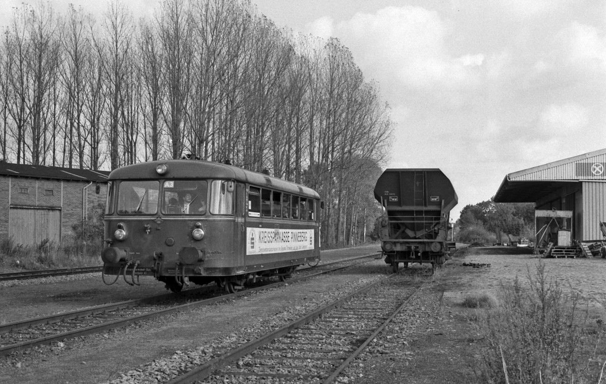Fotofahrt am 17.10.1987 auf der damaligen Betriebsstrecke Barmstedt – Ulzburg mit dem VT 3.08 - Barmstedt, östlicher Bahnhofsteil (Einfahrbereich aus Richtung Ulzburg) mit Ladestraße