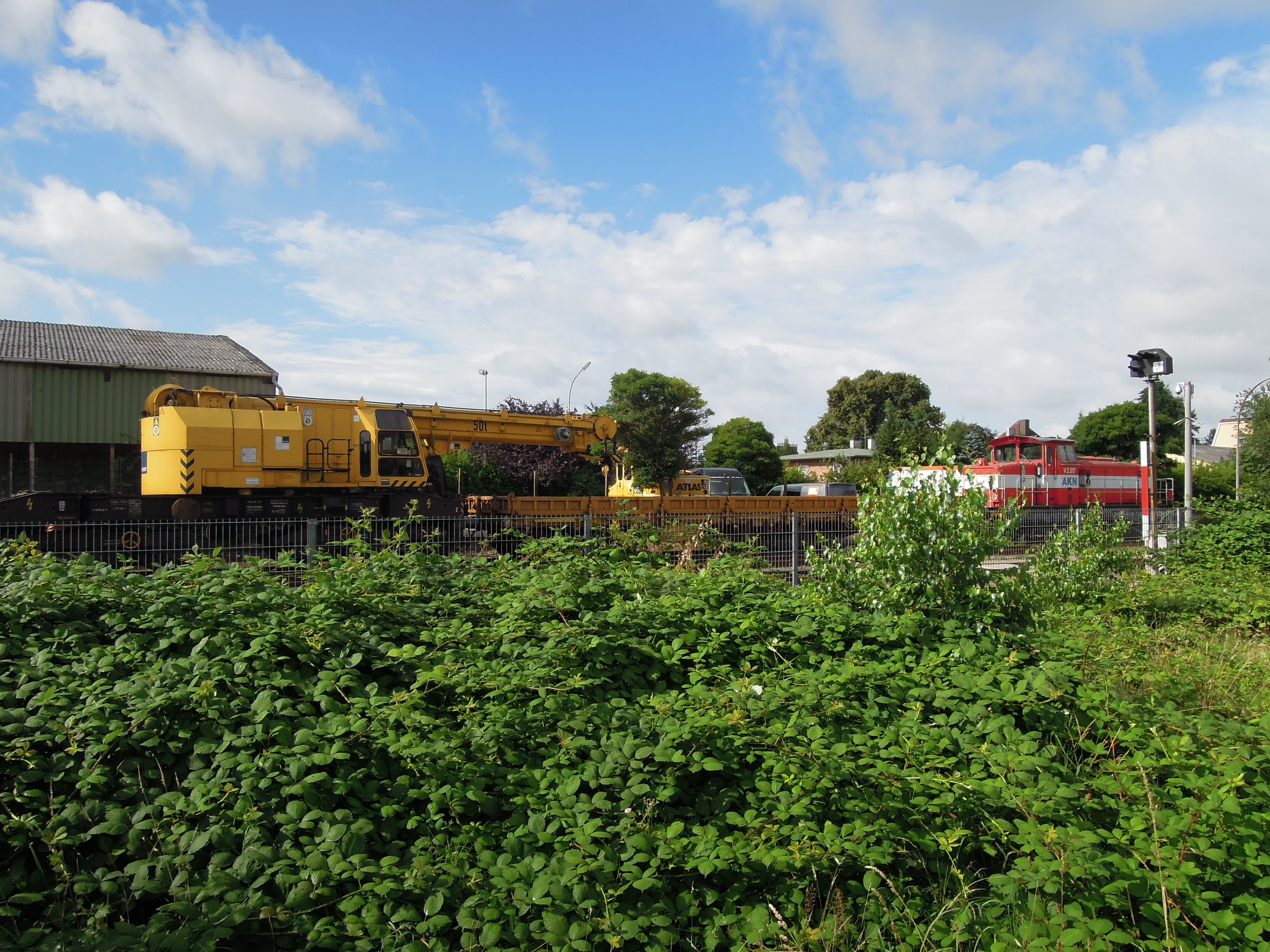 Für die Bauarbeiten zog die Lok V2.017 unter anderem einen Baukran nach Barmstedt.