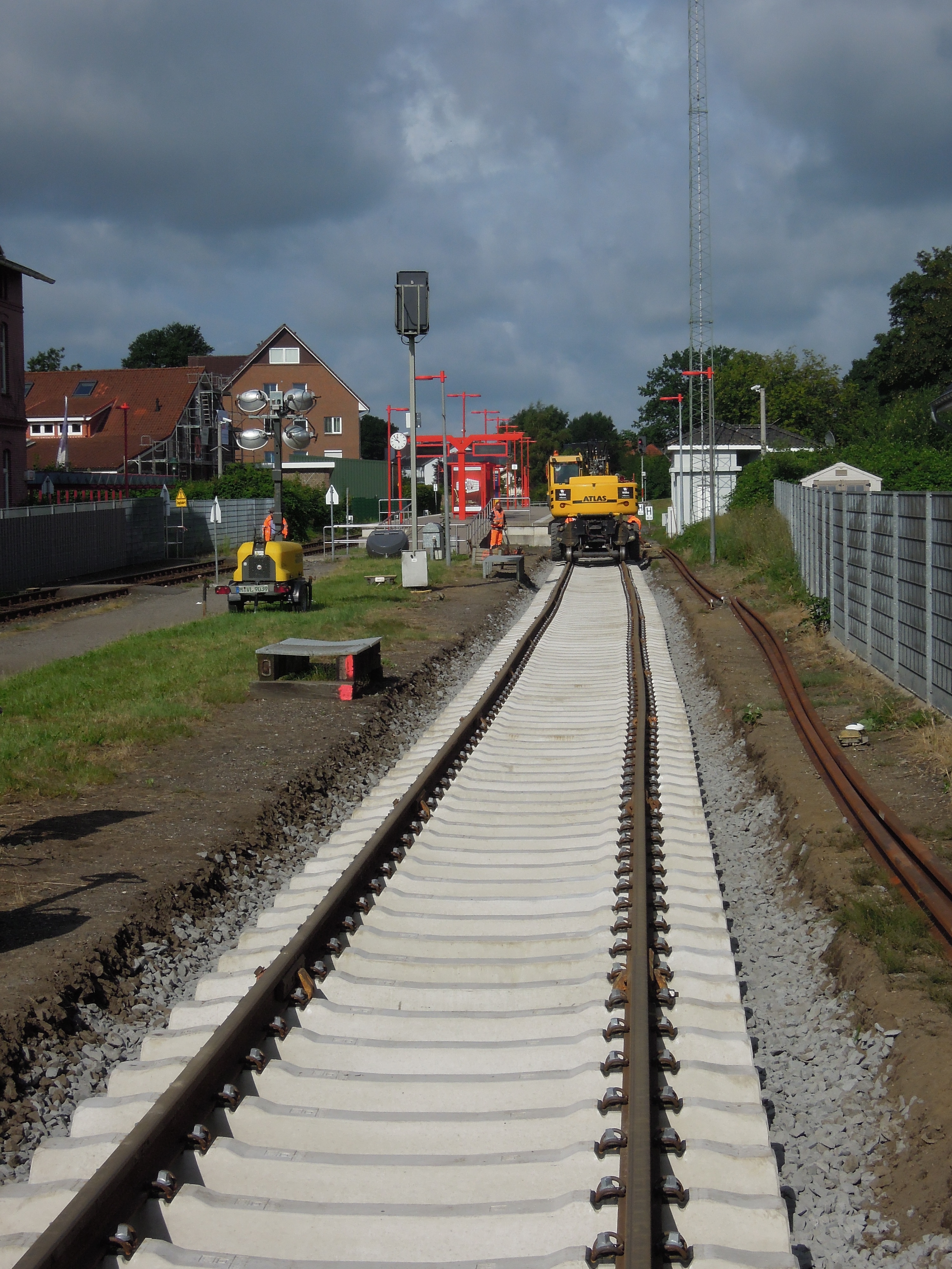 Für die Bauarbeiten zog die Lok V2.017 unter anderem einen Baukran nach Barmstedt.
