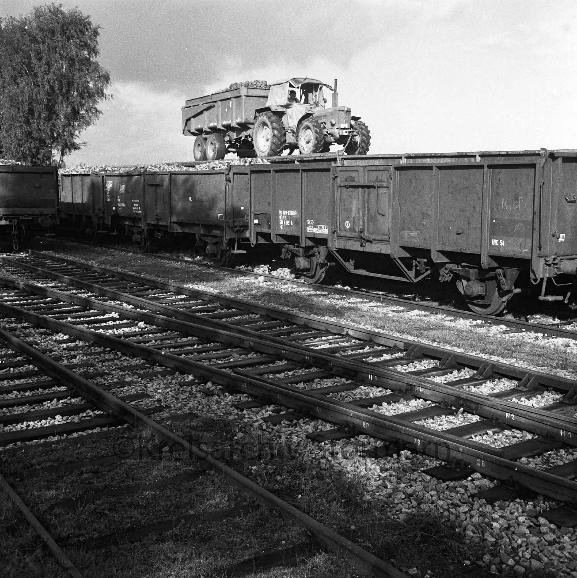 Im Jahre 1984 wurde die Verladerampe am Bf Blumendort für die Rübenernte intensiv genutzt. Die Rüben wurden direkt in die bereitstehenden Waggons gekippt. Die Aufnahme stammt aus dem Herbst 1984.