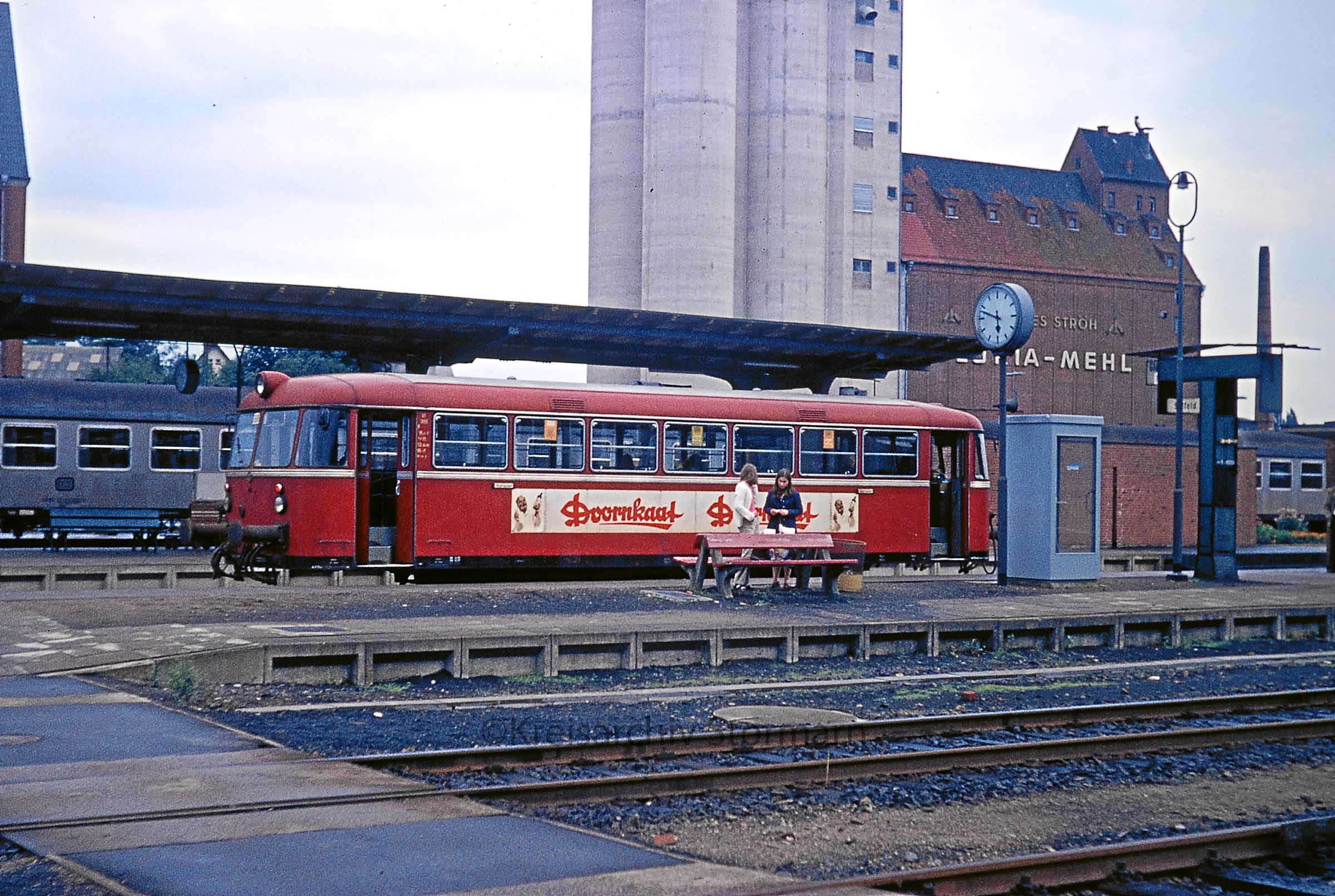 Auf diesem Bild kann man sehr gut die alte und neue Gleisnummerierung in OD nachvollziehen. Das leere Bahnsteiggleis war damals Gleis 3, weil die beiden Betriebsgleise im Vordergrund mitgezählt wurden. Richtung Lübeck wurde damals von Gleis 9 abgefahren. Später hat man diese beiden Gütergleise nicht mehr mitgezählt und mit Gleis 2 (anstelle von 4) begonnen, da das erste Bahnsteiggleis (von dem ursprünglich hauptsächlich in Richtung Ratzeburg abgefahren wurde) leer war, obwohl nie wieder mit einer Inbetriebnahme gerechnet werden konnte, war Gleis 1 im Geiste noch vorhanden. Der mechanische Zugzielanzeiger hatte an den Schiebern für Gleis 1 noch die Kennzeichnungen Ratzeburg, Hollenbek und Klein Zecher.