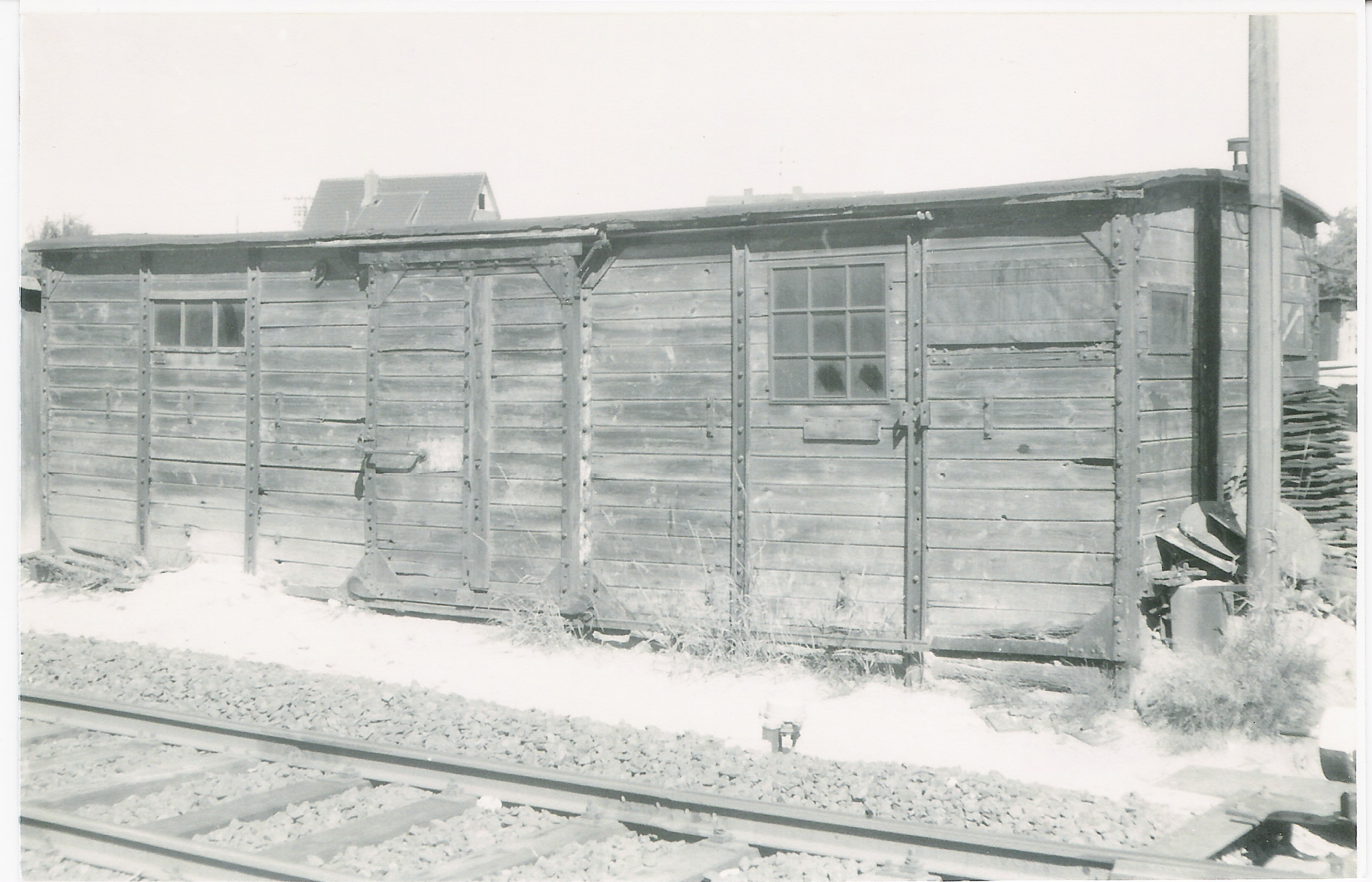 Diese Aufnahme zeigt den Wagenkasten eines ehemaligen Milchwagens im Bf Alveslohe. Der Wagenkasten diente als Aufbewahrungsraum. Das Datum der Aufnahme ist unbekannt. Die Aufnahme stammt von Manfred Hohmann.