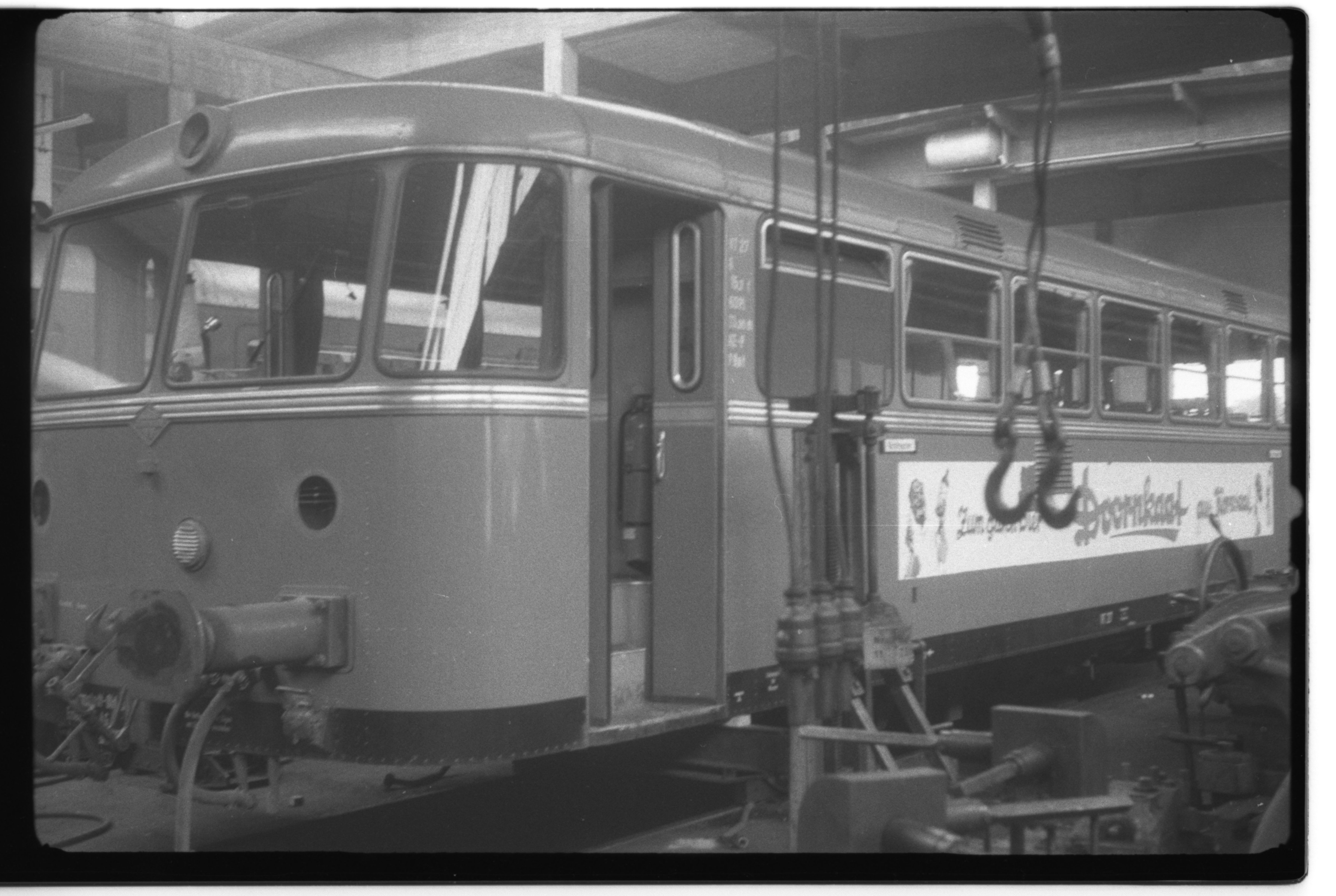 Während eines Werkstattaufenthaltes im Bw Kaltenkirchen bekam VT 27 vermutlich die typische rote Lackierung. Aufnahme von Manfred Hohmann aus dem Jahre 1962.