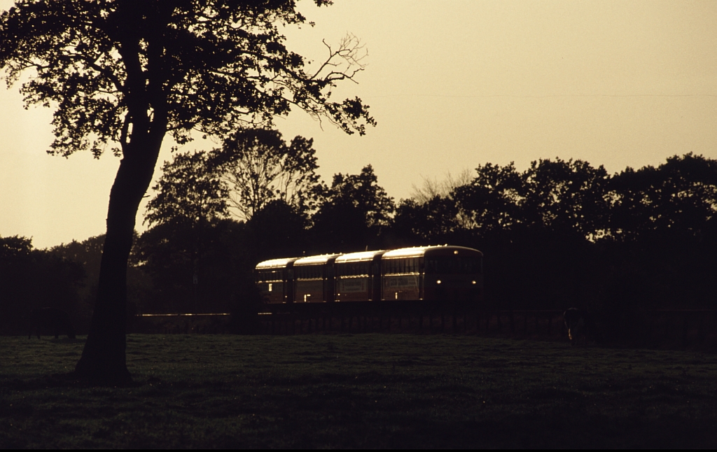 Eine Überführungsfahrt mit vier Uerdinger Schienenbussen zwischen Alveslohe und Ulzburg in Höhe Westerwohld von Barmstedt ins Bw Kaltenkirchen. Datum unbekannt.