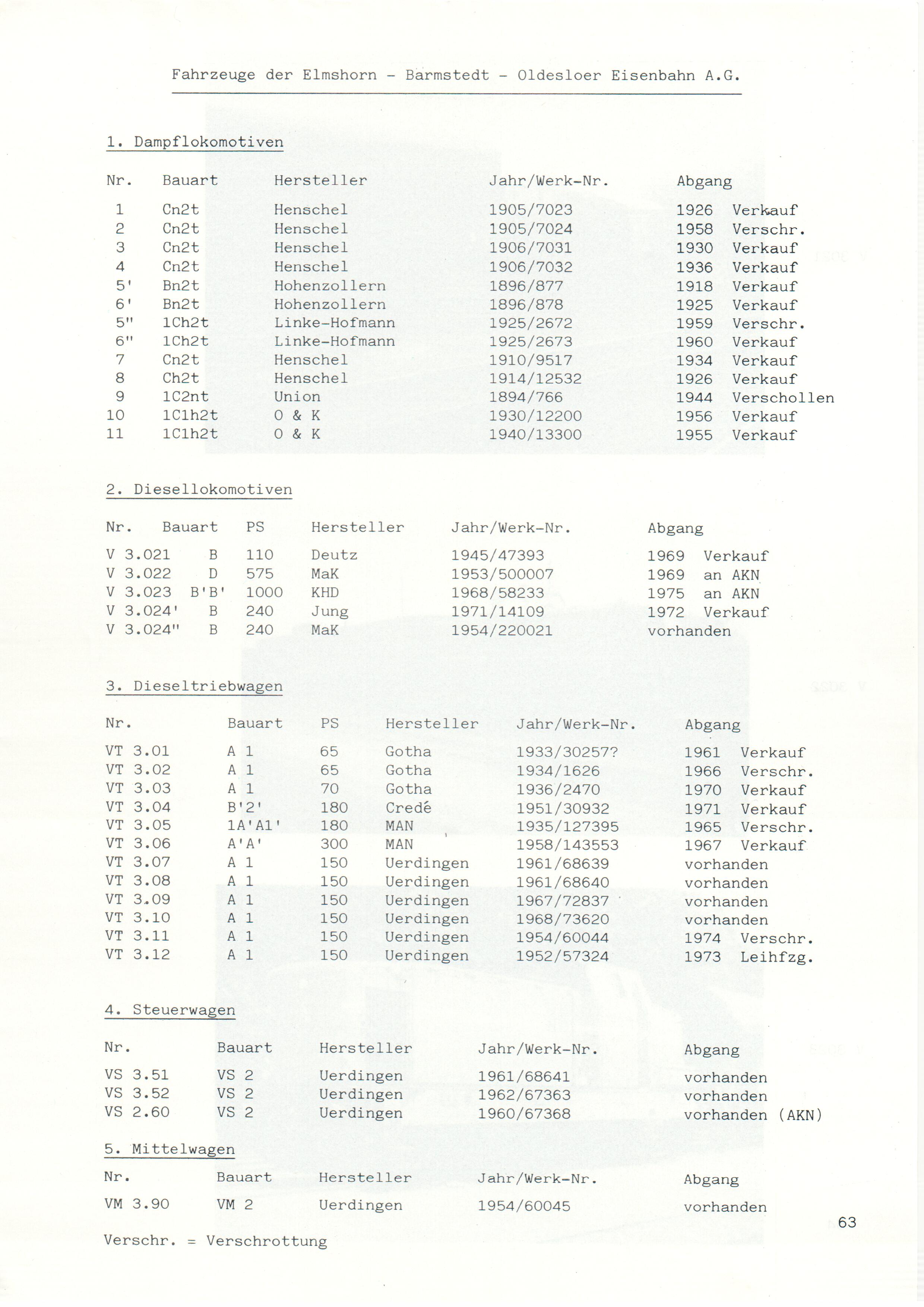 Im Jahre 1981 übernahm die AKN die EBOE und die Alsternordbahn, so dass ab diesem Zeitpunkt alle drei Bahnen unter dem Dach der AKN betrieben wurden. Anlässlich dieser Fusion erschien die vom Kameradschaftswerk der EBO herausgegebene Festschrift mit dem Titel "Die Geschichte der EBO-Eisenbahn".