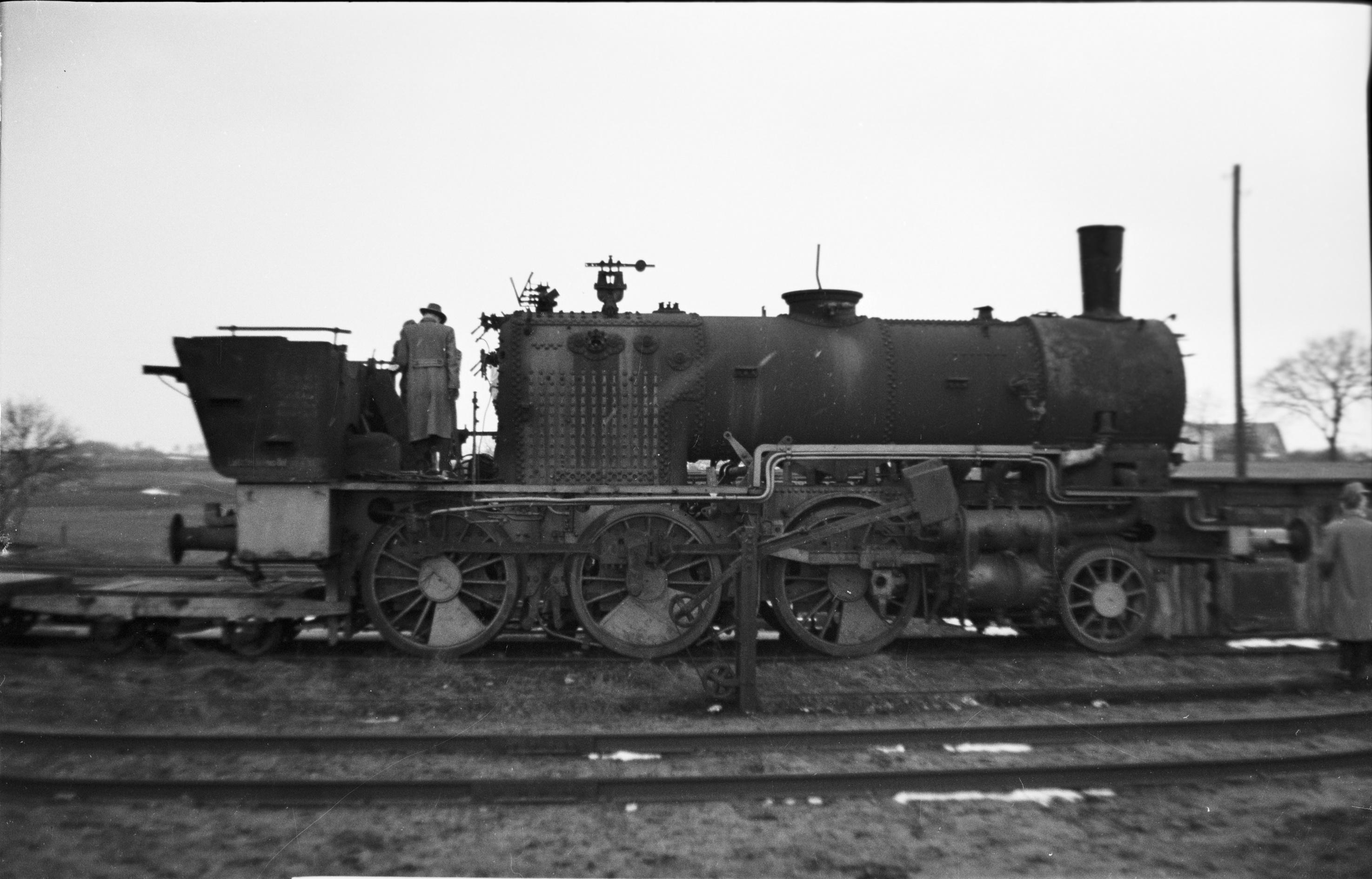 Während der Fahrt mit einem Sonderzug der Freunde der Eisenbahn (FdE) am 9. März 1958 hatten die Fahrgäste während eines Aufenthaltes in Wakendorf-Götzberg das Bw zu besichtigen. Dabei wurde auch die teilzerlegte Dampflok Lok 5 bestiegen und besichtigt. Aufnahme von Manfred Hohmann.