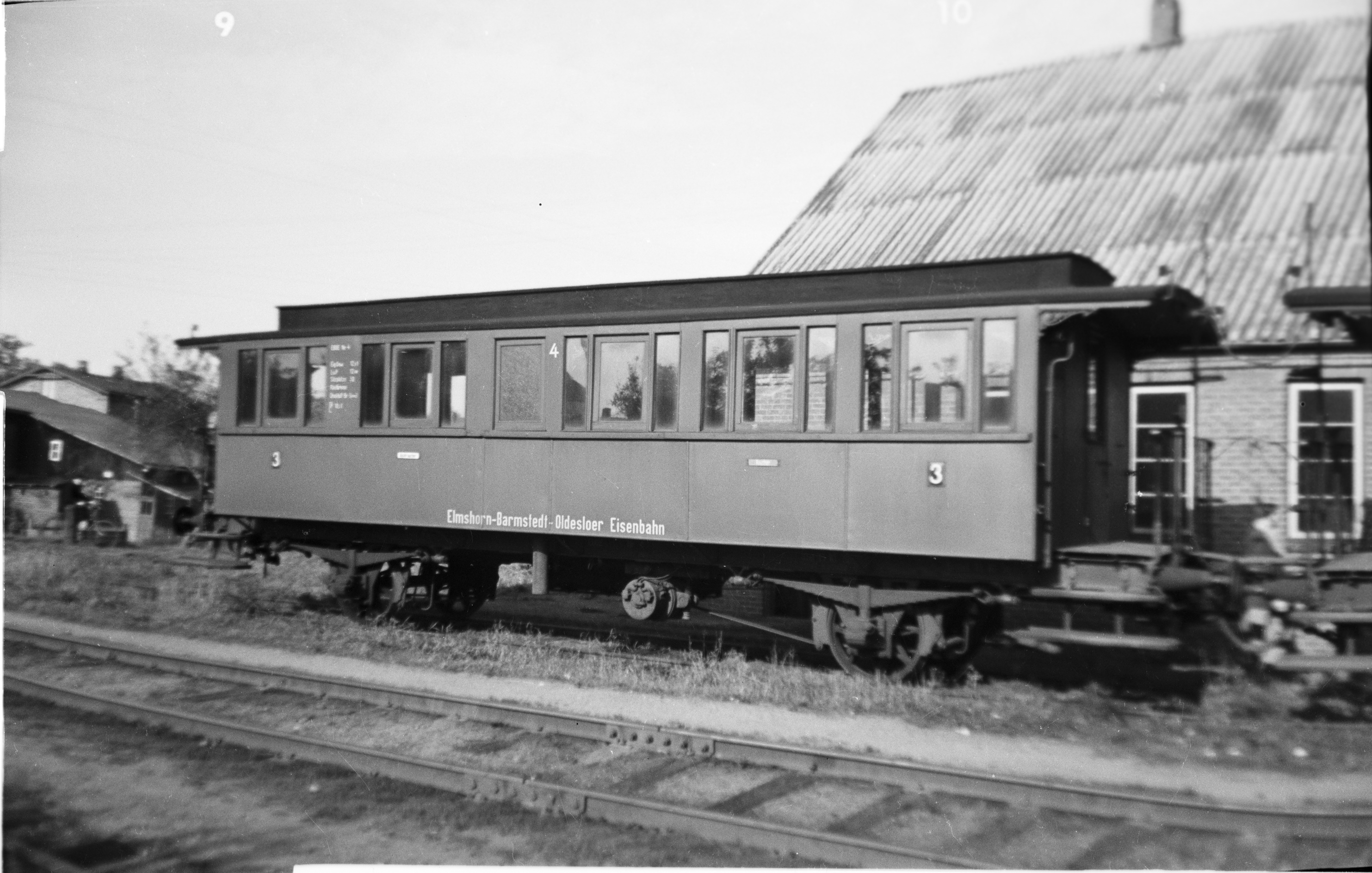 Dieses Bild passt zu einer Reihe weiterer Bilder aus dem Jahre 1958. Die Bilderserie zeigt die abgestellten Triebwagen, Packwagen und Personenwagen im Jahre 1958 neben dem Lokschuppen des Bw Barmstedt. Hier sehen wir am Ende der abgestellten Wagen den Personenwagen 4. Aufnahme von Manfred Hohmann.