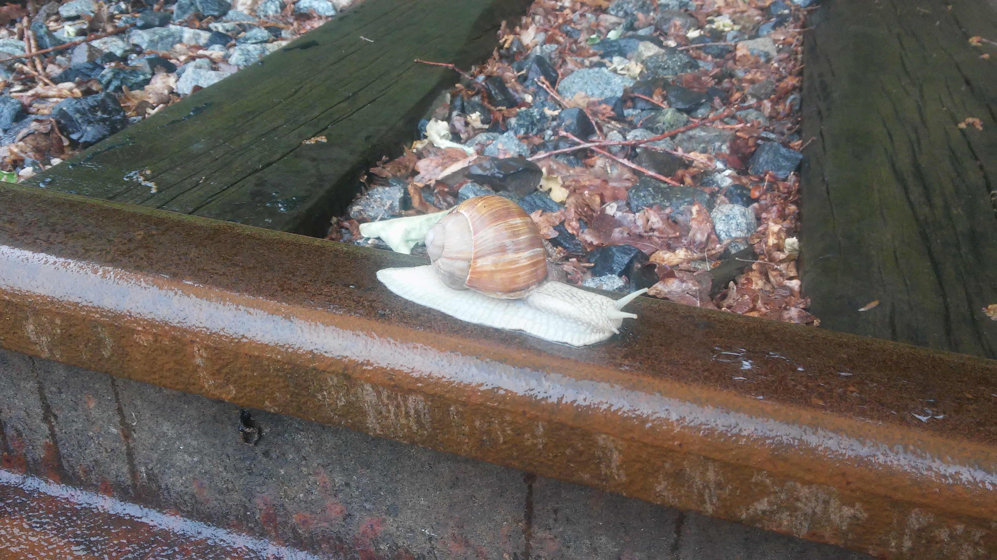 Sinnbildlich ist diese Schnecke auf der Schiene der Trasse zwischen Blumendorf und Oldesloe. Aufnahme vom 12. Juni 2016.