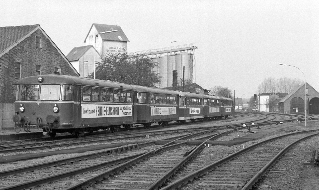 Dieser fünfteilige EBOE-Zug überraschte mich am 06.05.1976, fotografierte ihn damals aber leider nur im Bahnhof Barmstedt. Dieser Langzug war nur bei einem morgendlichen Berufsverkehrs-Zugpaar zu sehen und für mich bei späteren EBOE-Besuchen immer das Highlight des Tages. Auf diesem Bild bestand der Zug aus folgenden Fahrzeugen: VT 3.07, VS 3.51, VM 3.90, VT 3.08, VT 3.10, Author Dieter Riehemann
